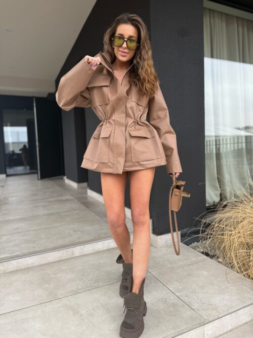 KRÓTKA KURTKA LATEX BRĄZOWE FUTERKO