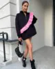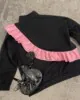 Bluza o kroju OVERSIZE z zamkiem przy biuście oraz ozdobnymi falbanami na przodzie i tyle bluzy.