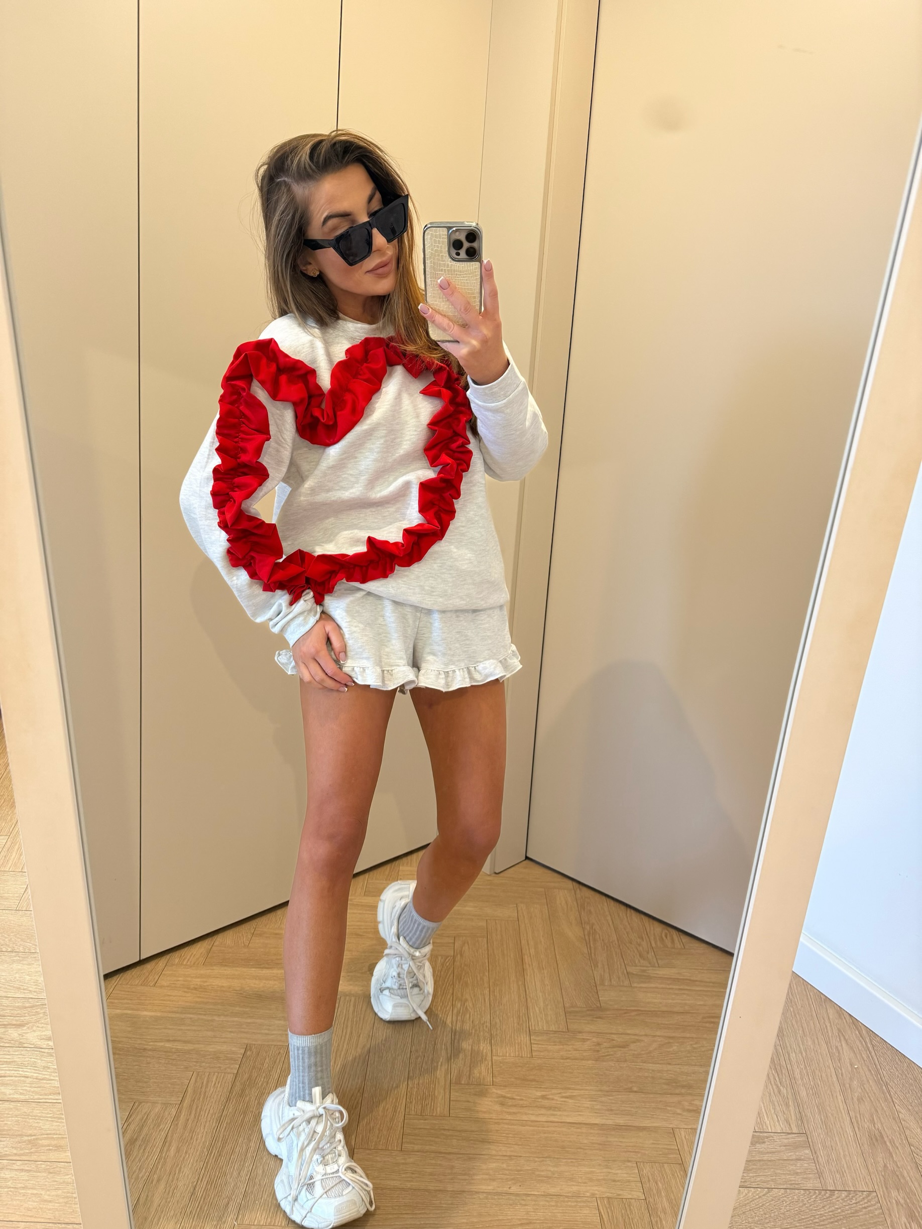 Lekko ocieplana bluza z falbankami które układają się w kształt serca. Czas oczekiwania na wysyłkę : około 3 dni robocze.