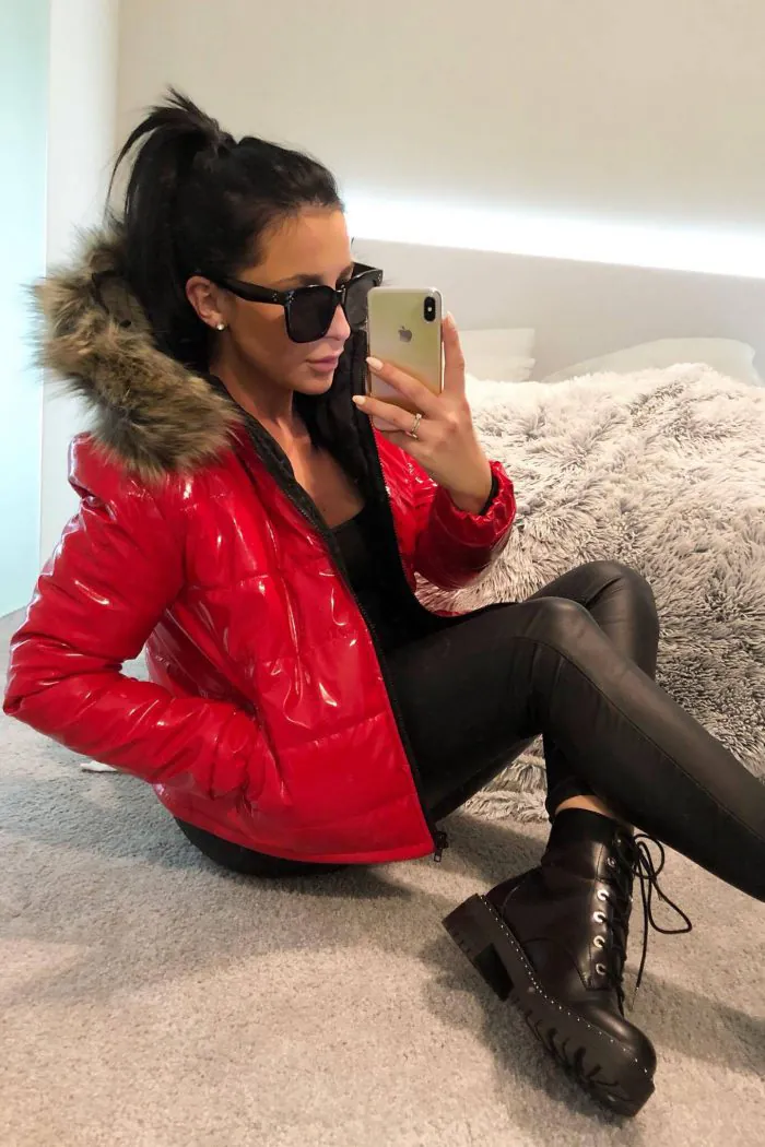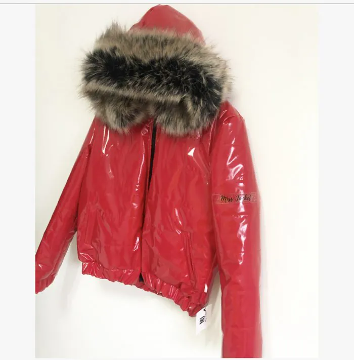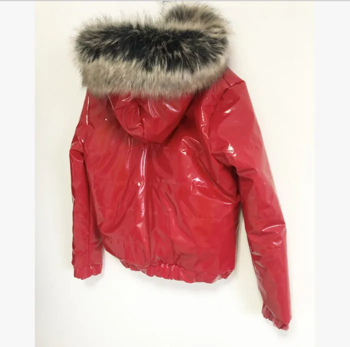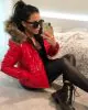 CZERWONA KRÓTKA KURTKA LATEX brązowe futerko