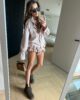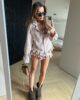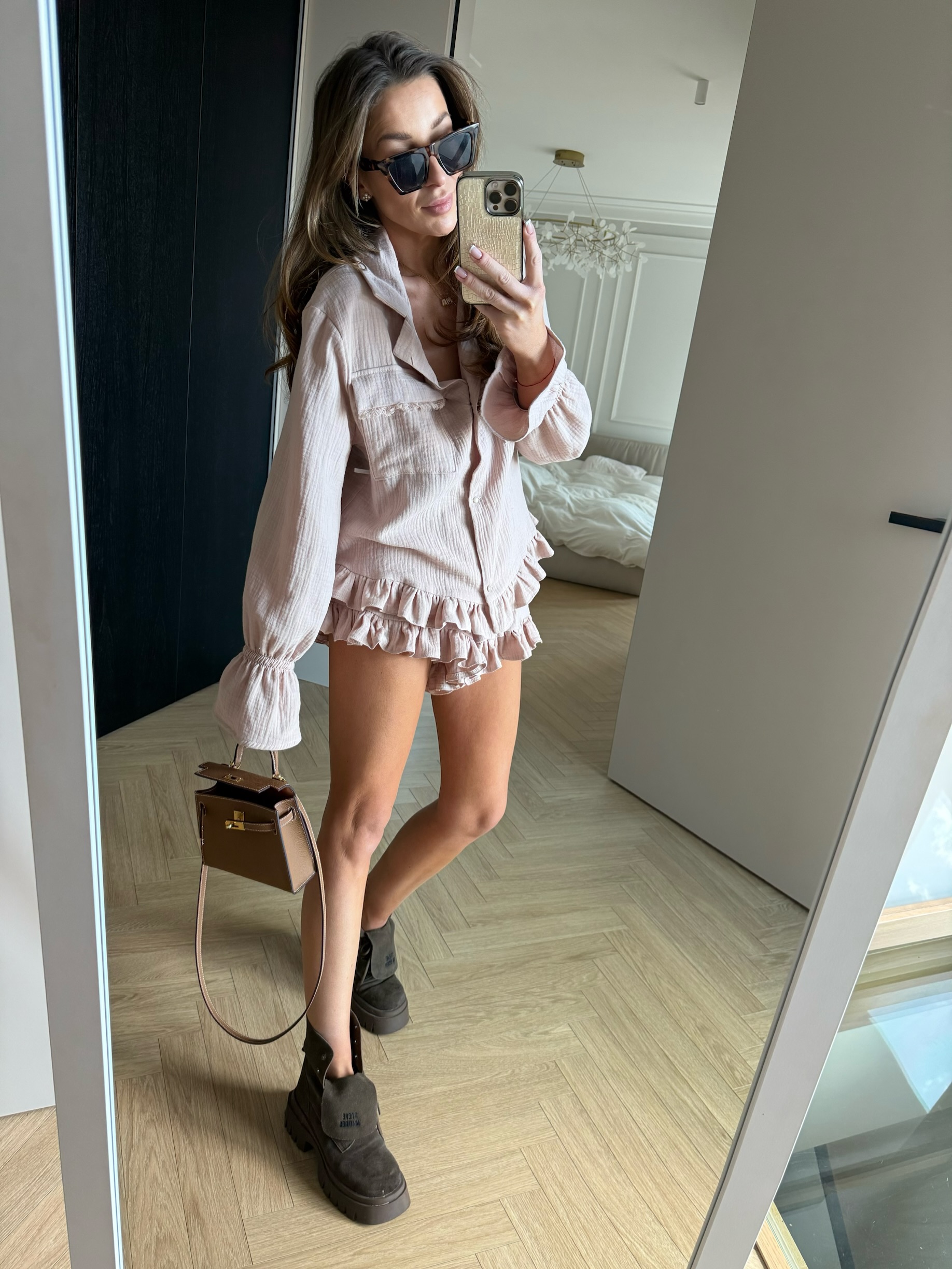 Komplet koszula + szorty z wysokim stanem. Całość uszyta z muślinu bawełnianego.