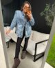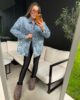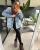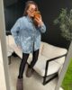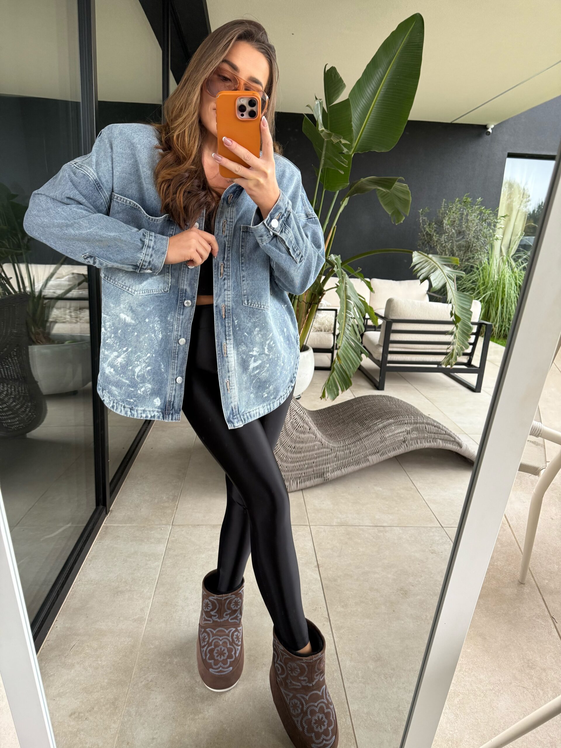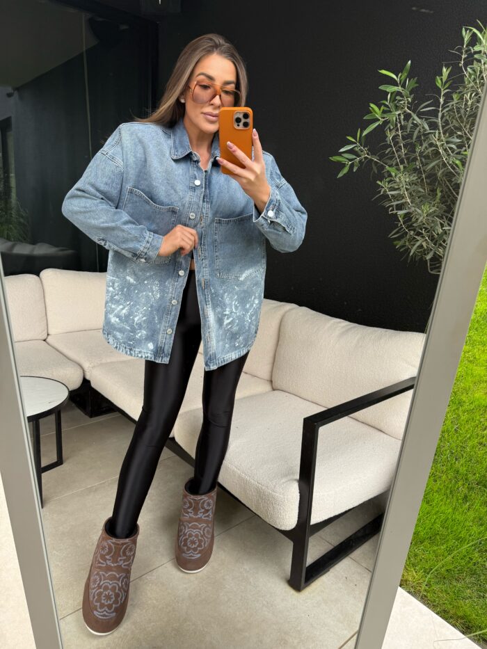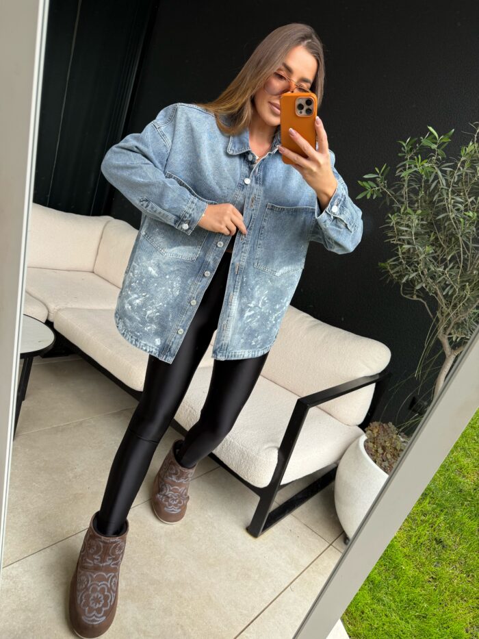 Koszula jeansowa z poduszkami na ramionach , farbowana ręcznie na przodzie i tyle koszuli.