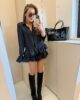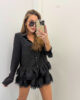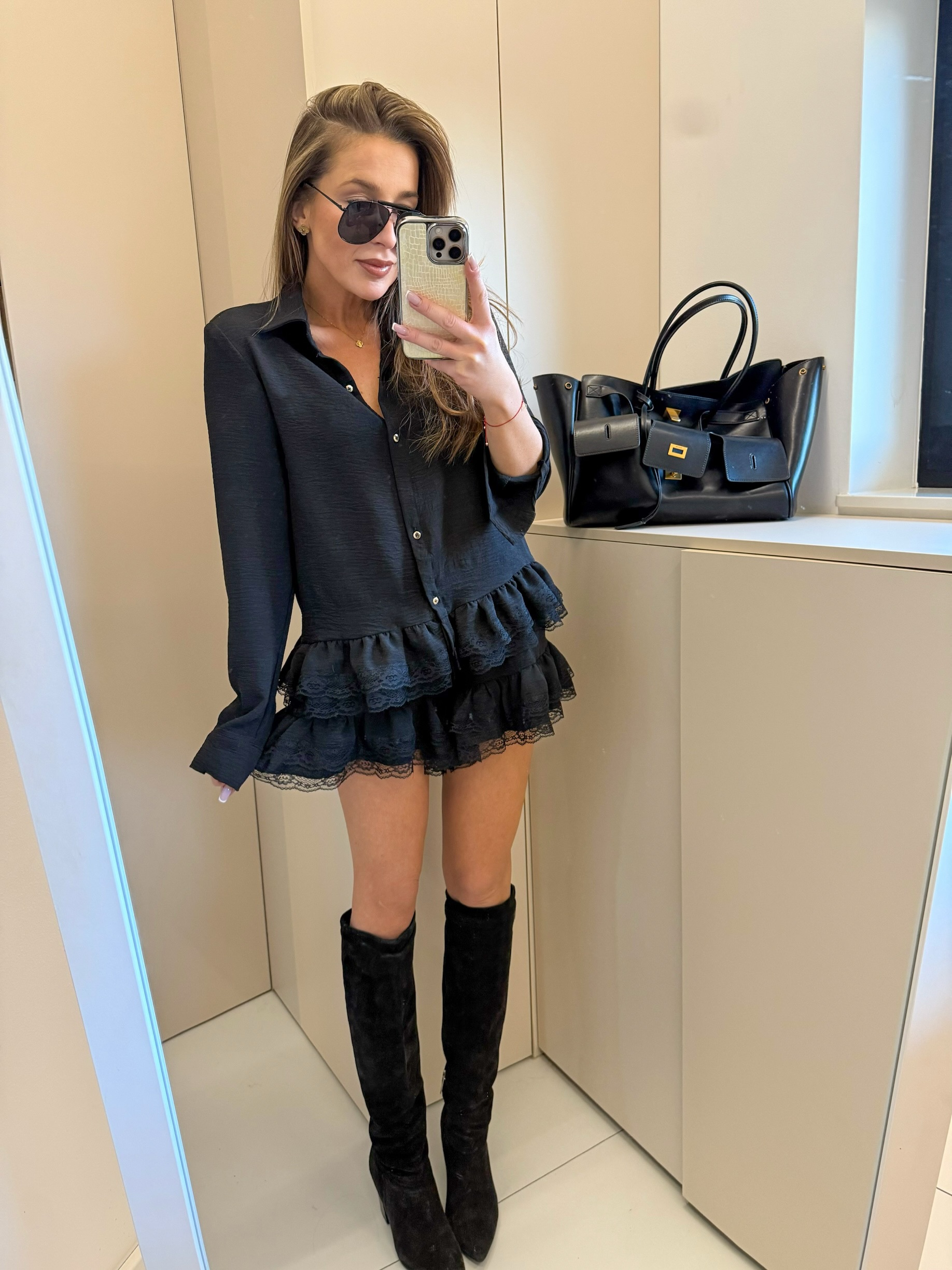 Komplet koszula z falbankami i koronką +szorty o kroju spódniczki z falbankami i koronką. Koszula zapinana na złote guziki