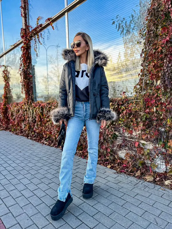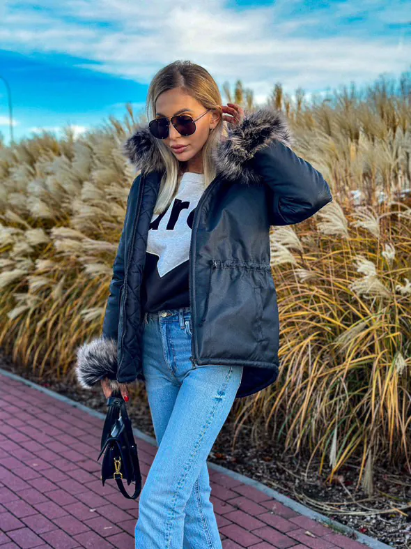 Ocieplana kurtka ze ściągaczem w pasie. Futerka odpinane