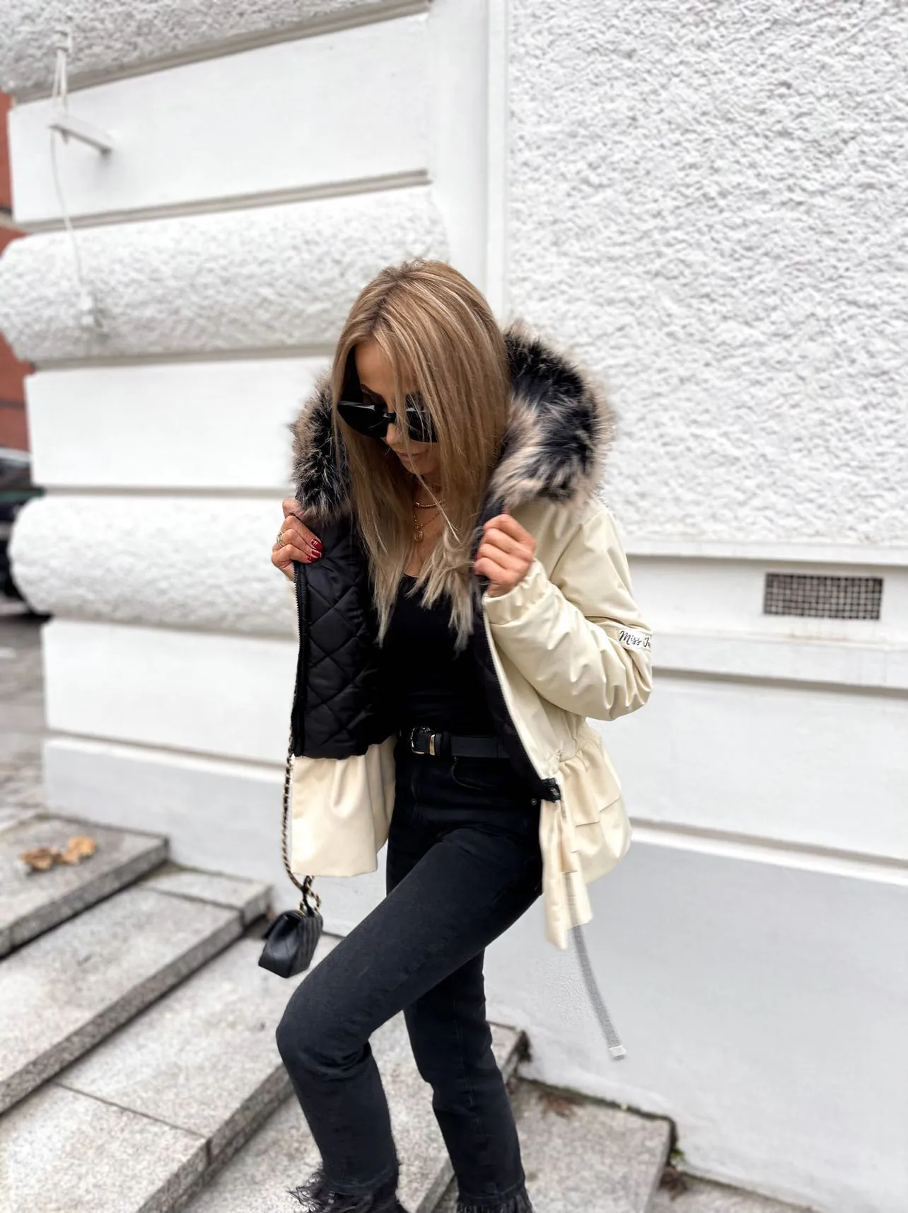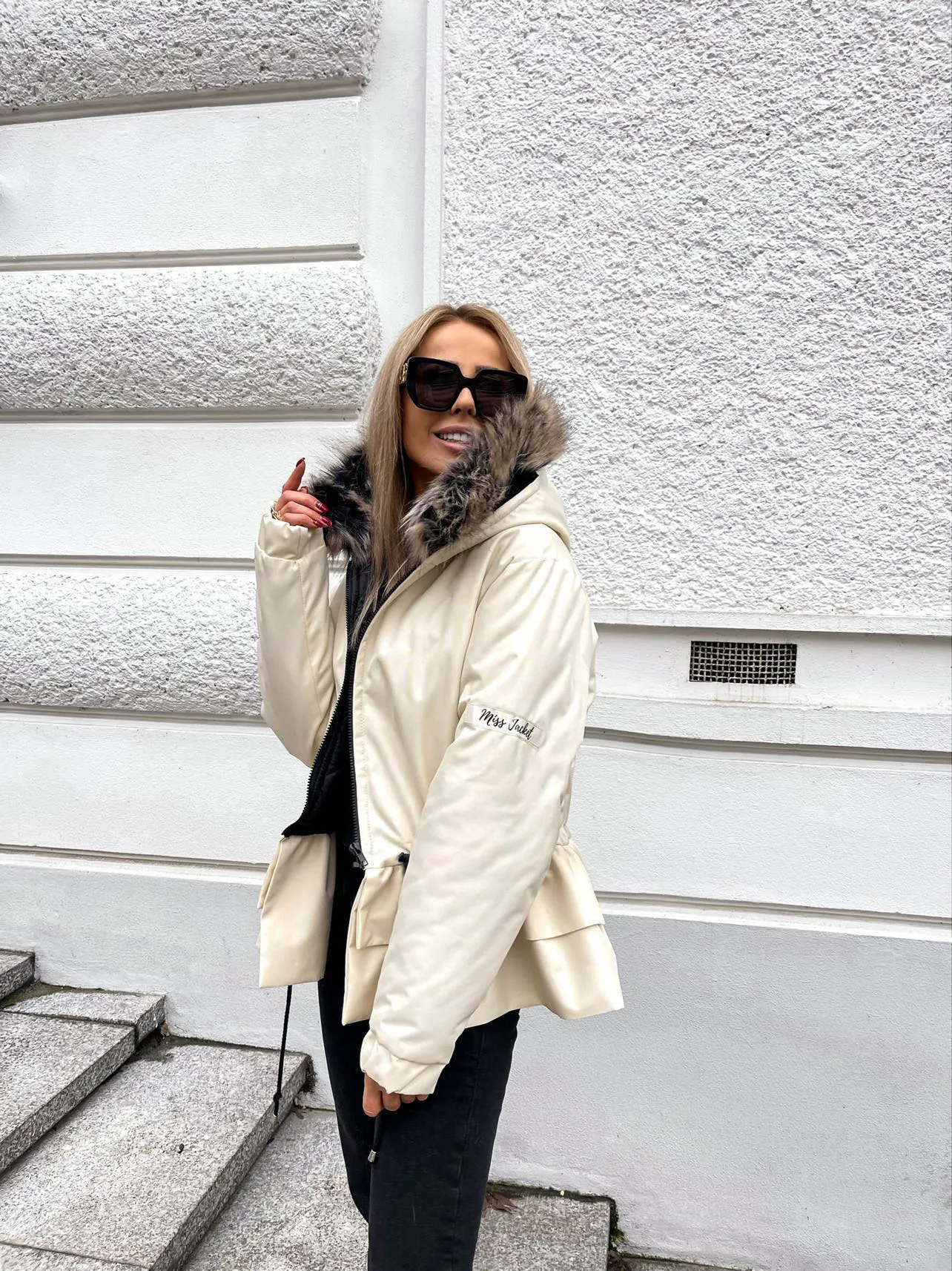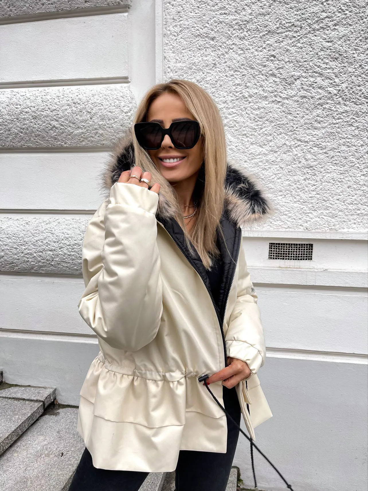 Zimowa ocieplana kurtka o kroju OVERSIZE . Wewnątrz ocieplina oraz wykończenie podszewką, futerko odpinane. CZAS OCZEKIWANIA : około 4-5 dni roboczych