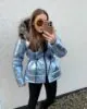Ocieplana kurtka uszyta z przeciwdeszczowej tkaniny. W pasie ściągacz z możliwością regulacji , futerko odpinane.