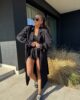 Płaszcz maxi z zamkiem odpinanym od góry i od dołu. Futerka odpinane