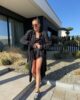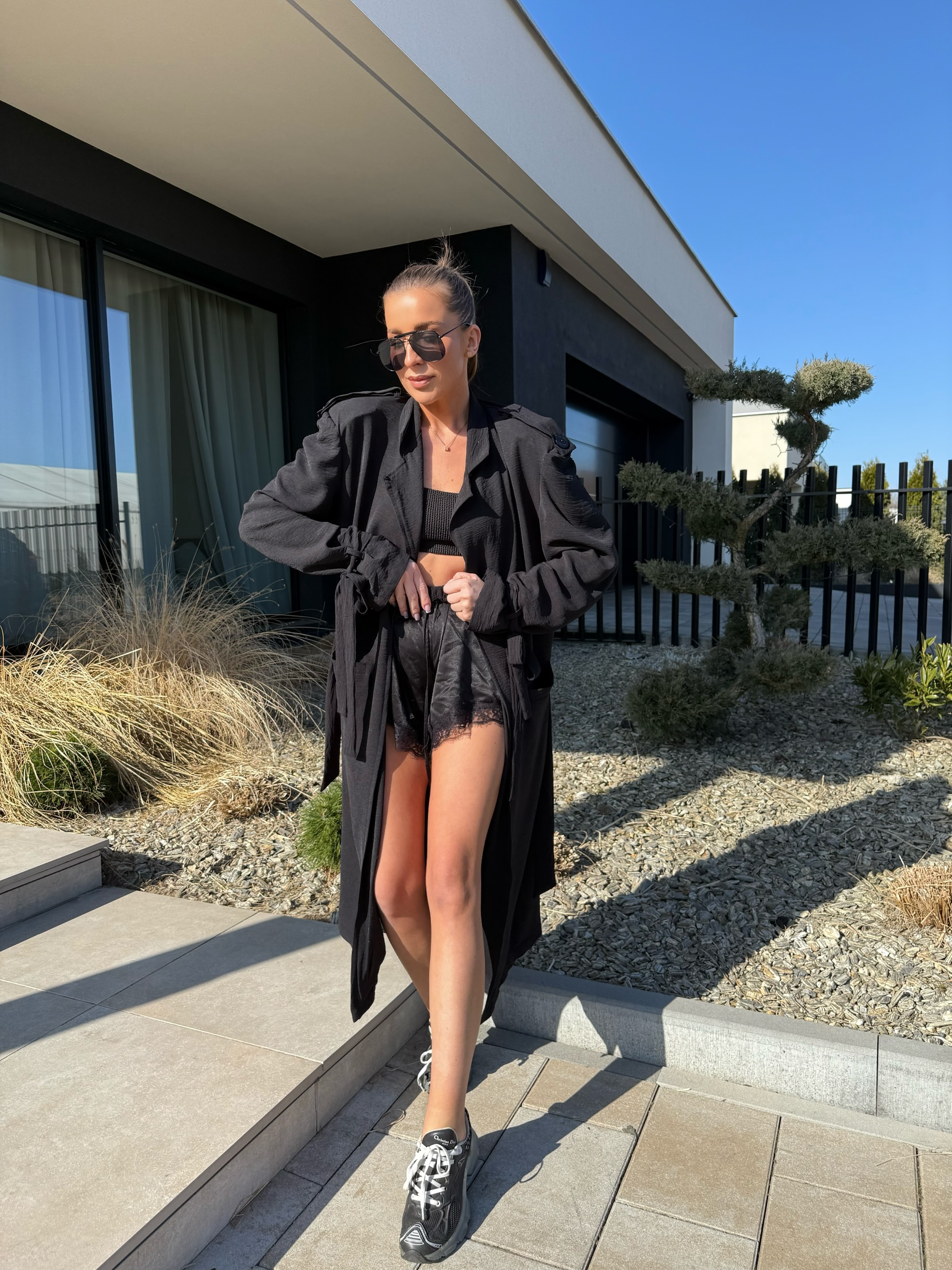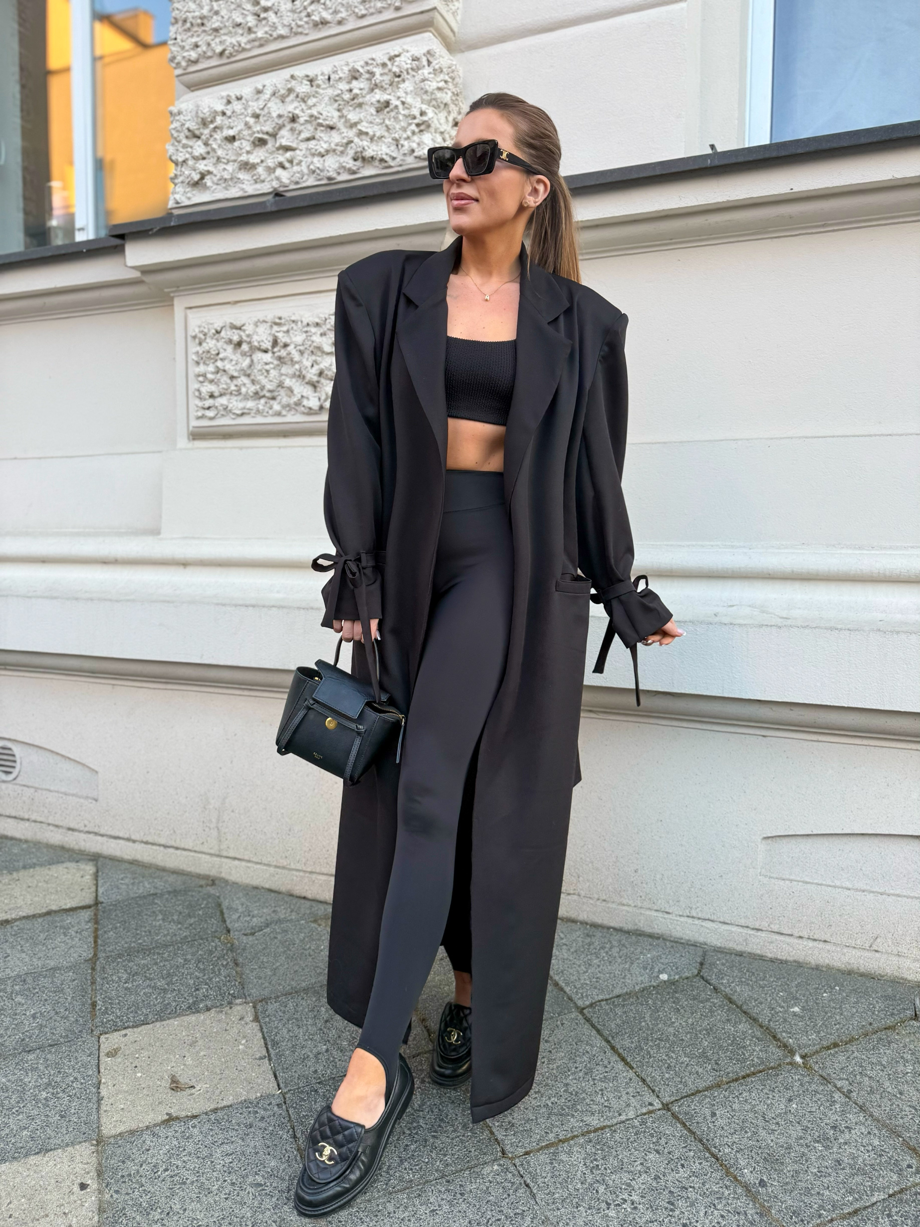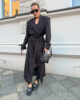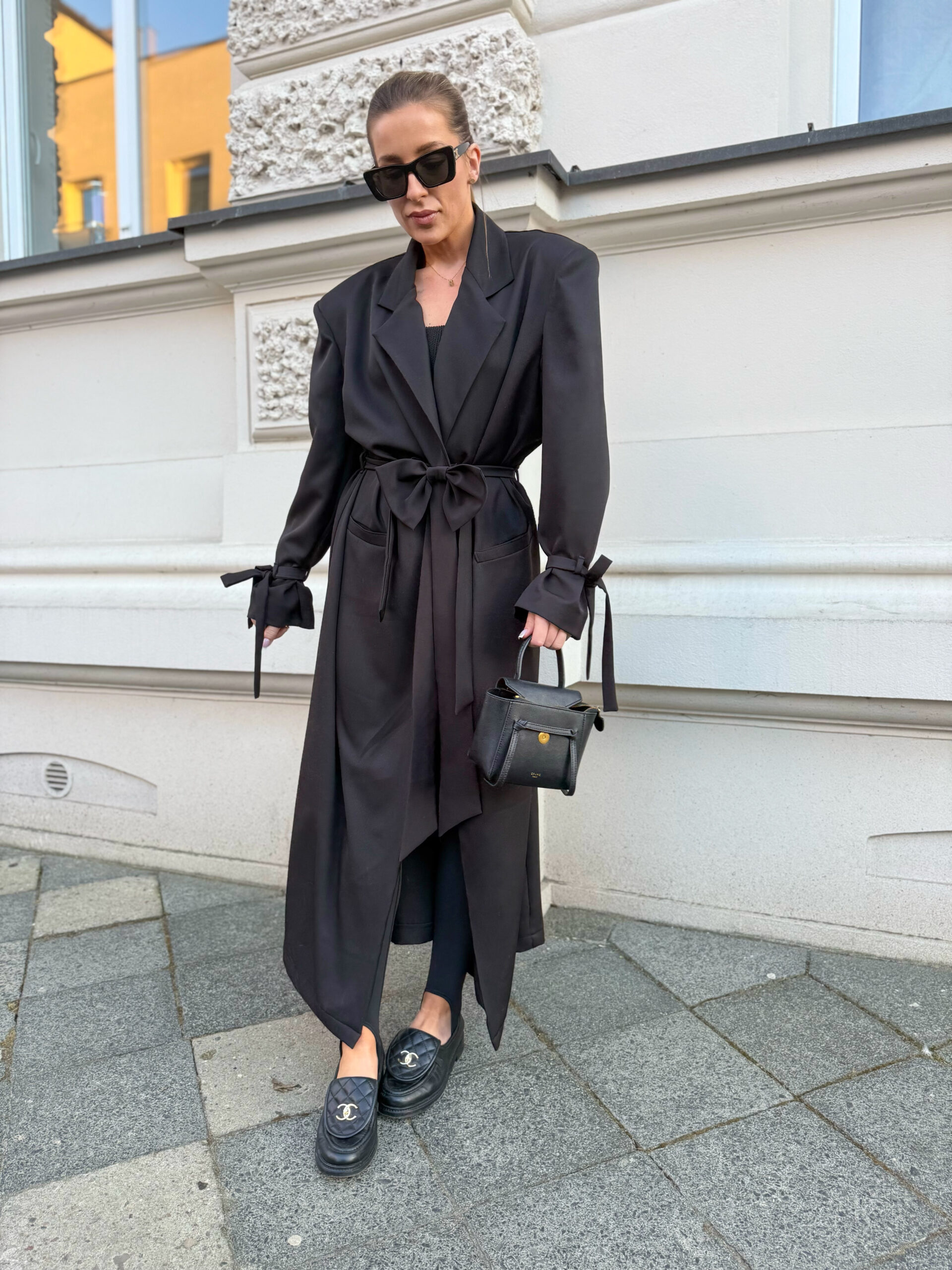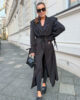 Płaszcz maxi z poduszkami na ramionach. W komplecie pasek .
