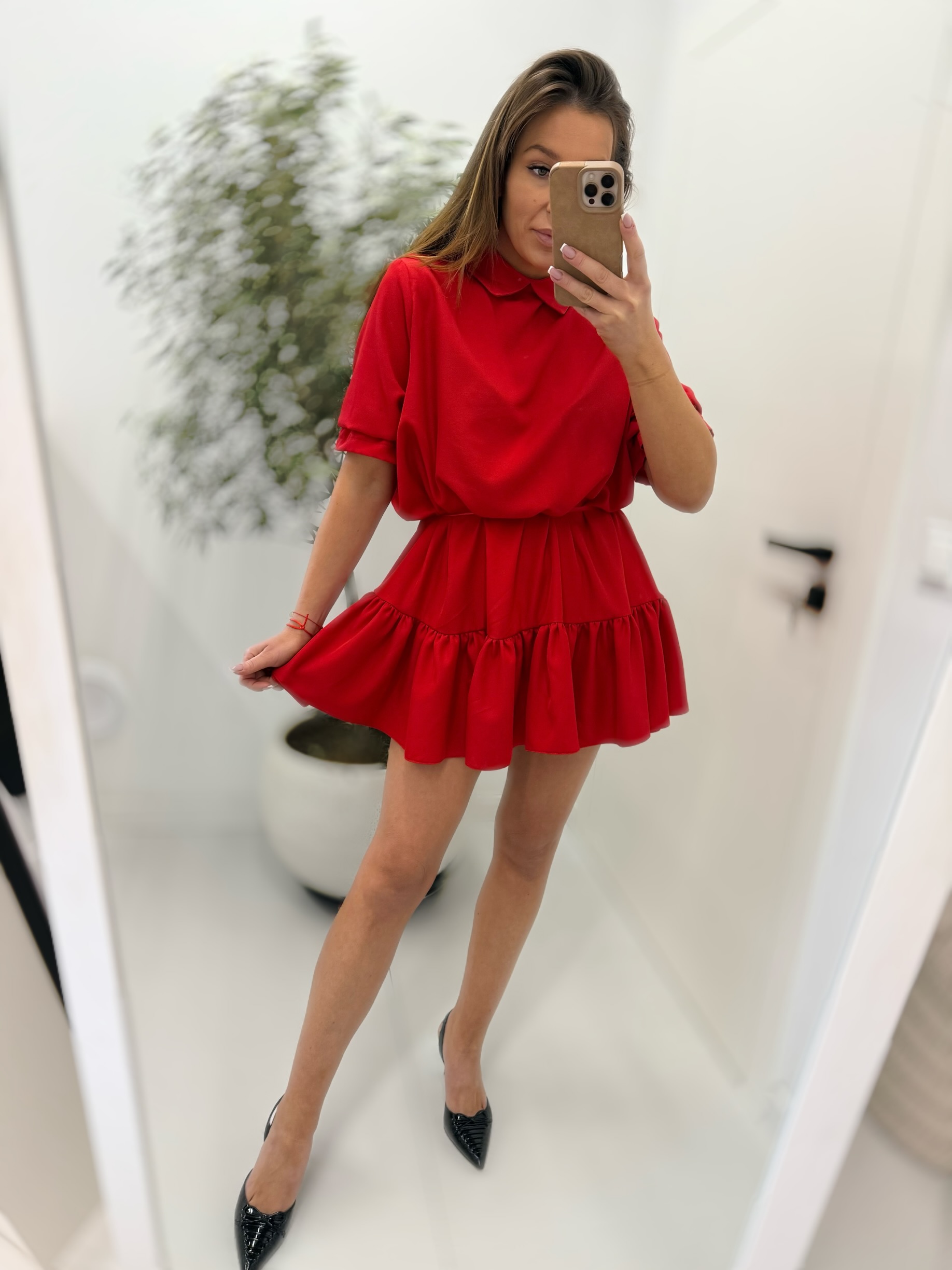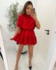 Sukienka z falbanką i kołnierzykiem , pasek w komplecie.
