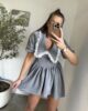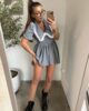 Dresowa sukienka z kołnierzykiem , zapinana na kryty zamek. Sukienka uszyta z elastycznej dzianiny. Skład : bawełna , elastan.