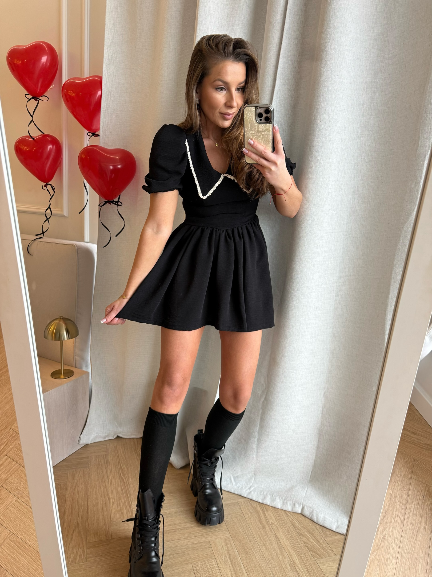 Sukienka z kołnierzykiem , zapinana na kryty zamek.
