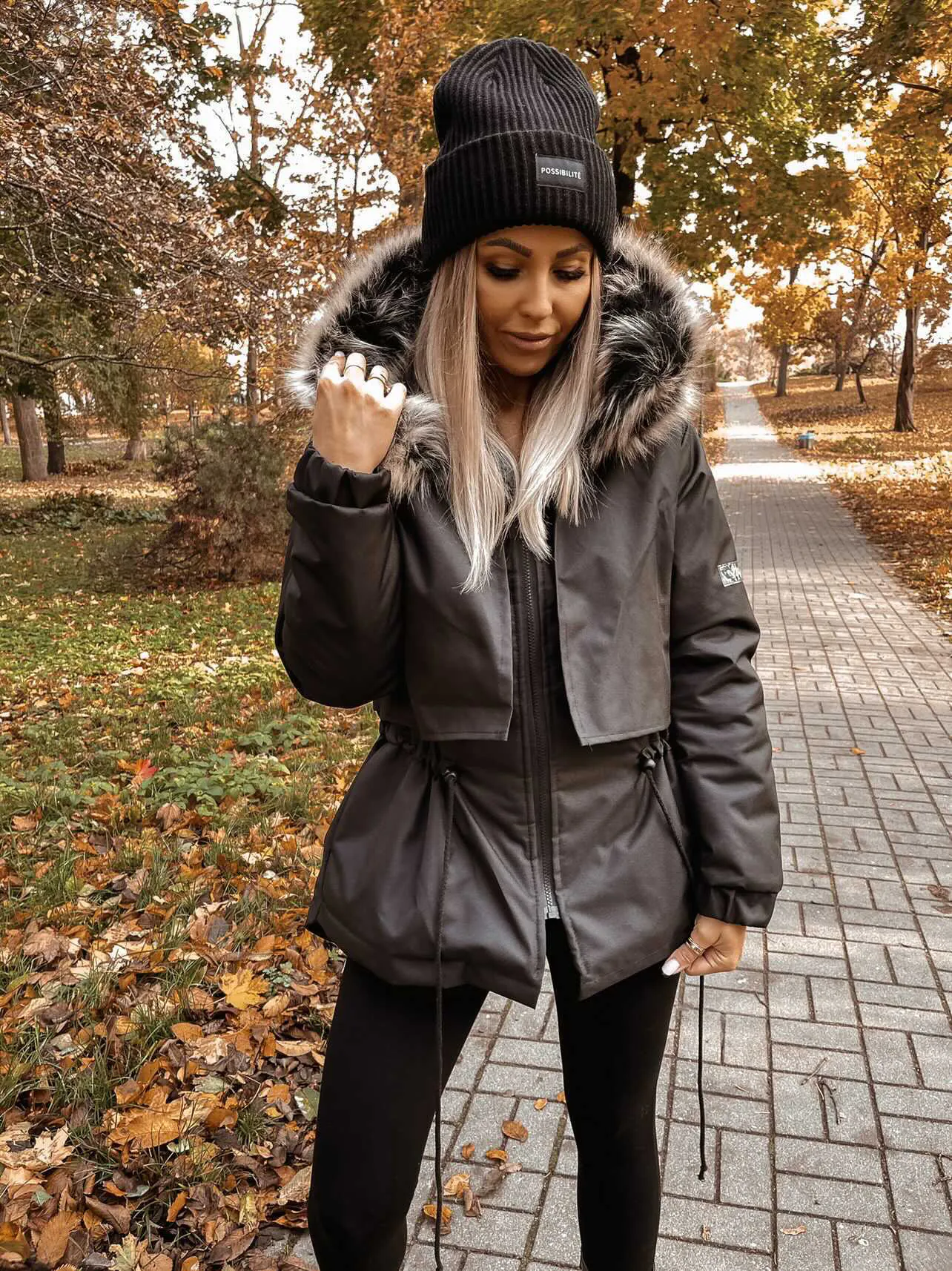 Zimowy , ocieplany płaszczyk. Tunel ze sznurkiem na wysokości pasa. Wewnątrz ocieplina oraz wykończenie podszewką, futerko odpinane. CZAS OCZEKIWANIA : około 5-6 dni roboczych.